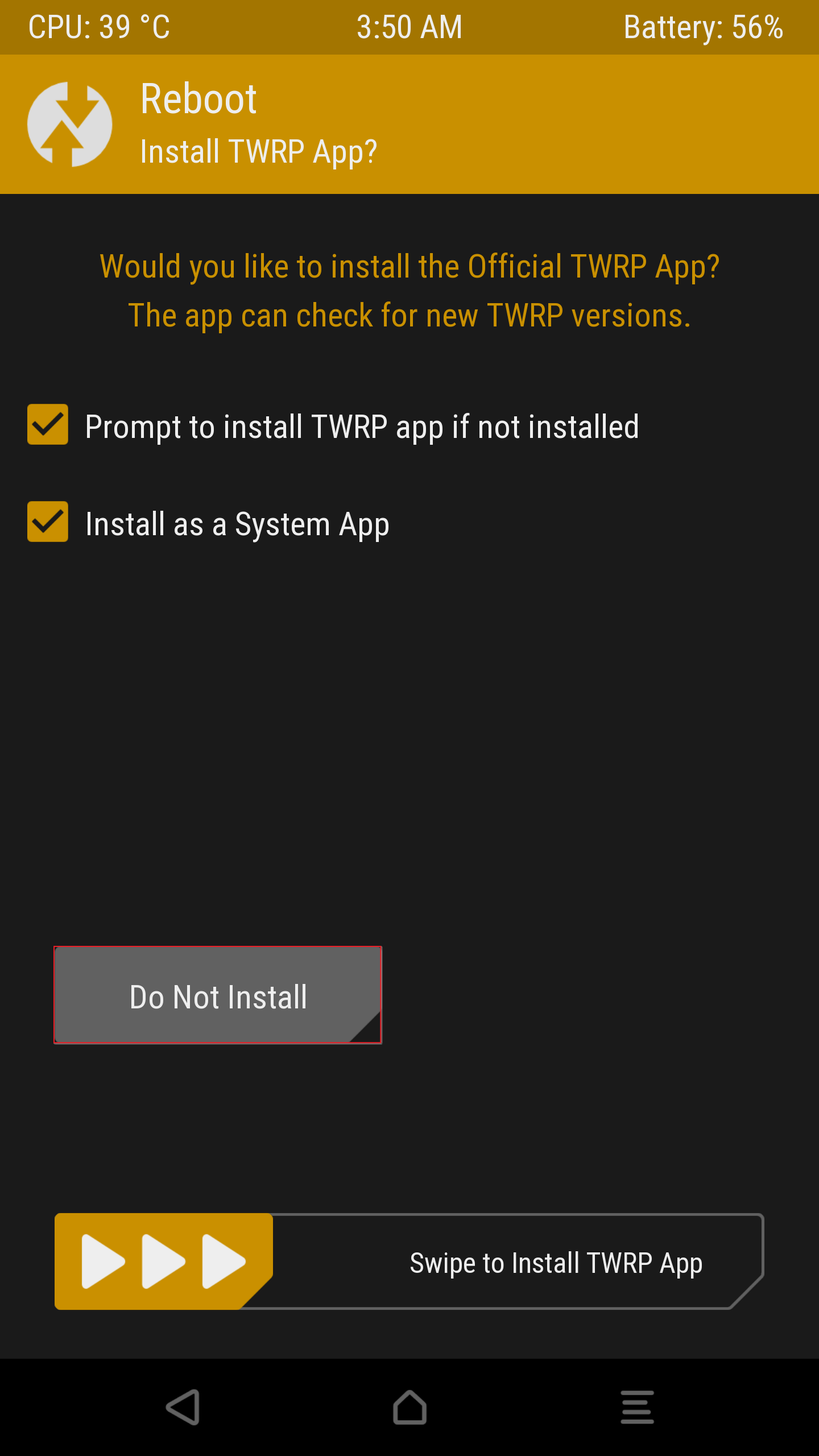 해당 두 개의 파일을 다운로드 받고, TWRP (리커버리) 에 접근, Install 메뉴에서 다운로드 파일 2개 설치를 수행한다.