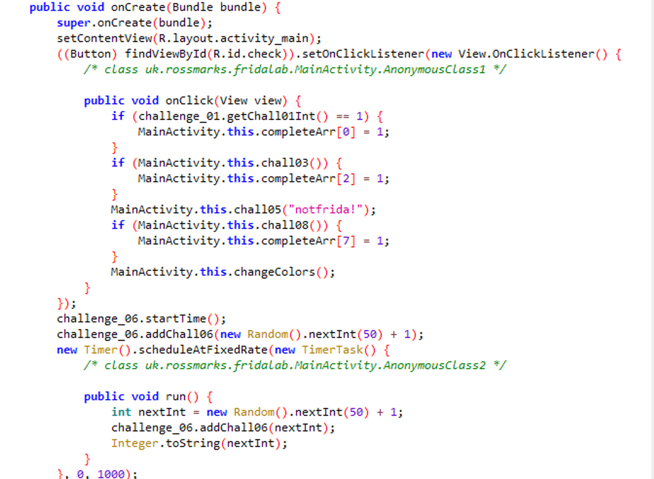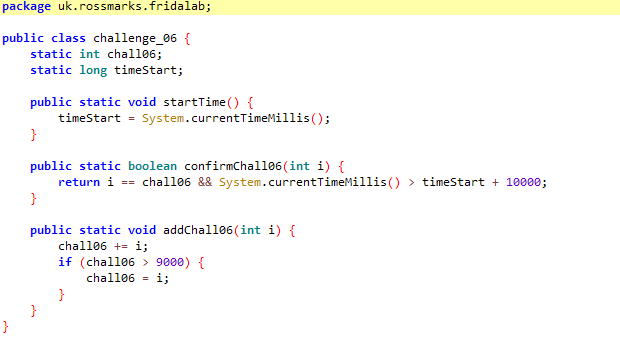 var challenge_06 = Java.use('uk.rossmarks.fridalab.challenge_06')