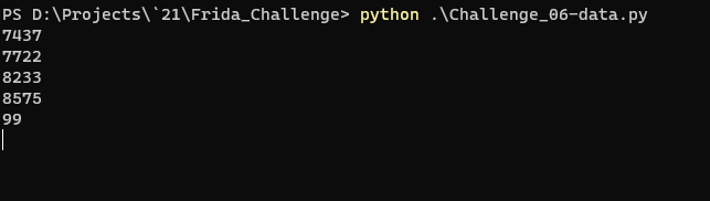 chall05() 로 지속적으로 "frida" 를 보내라.
