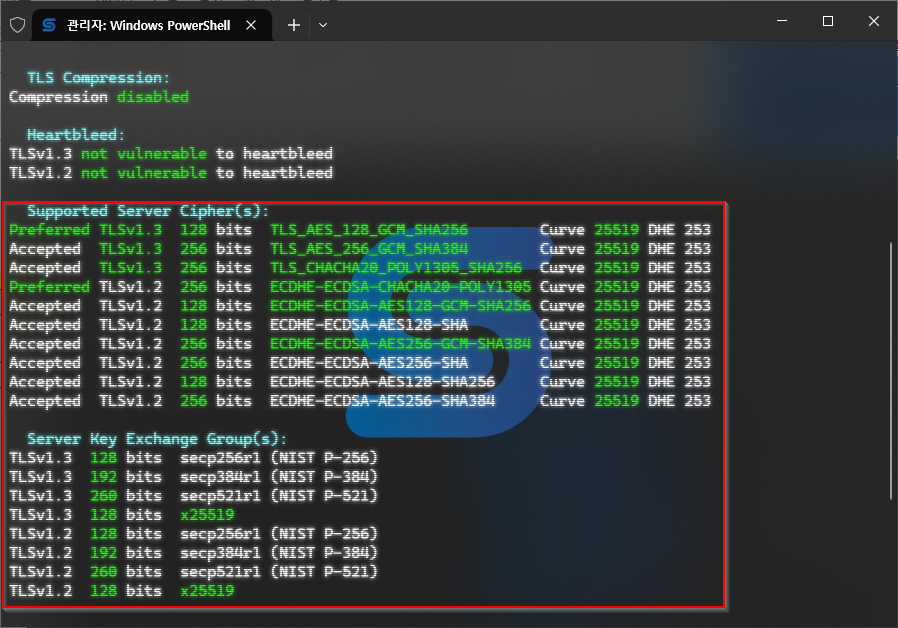 해당 코드를 실행하고 난 이후 확인해보면 취약한 알고리즘인 경우, 아예 빨간색으로 마킹해서 나오거나 빨간색 글자로 서술되어 나오게된다.