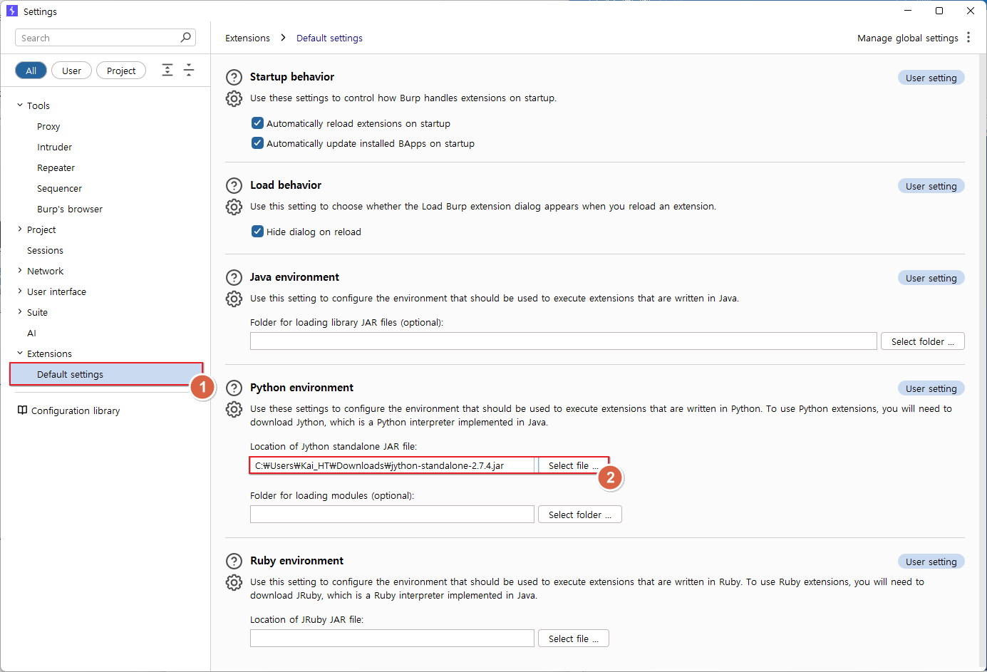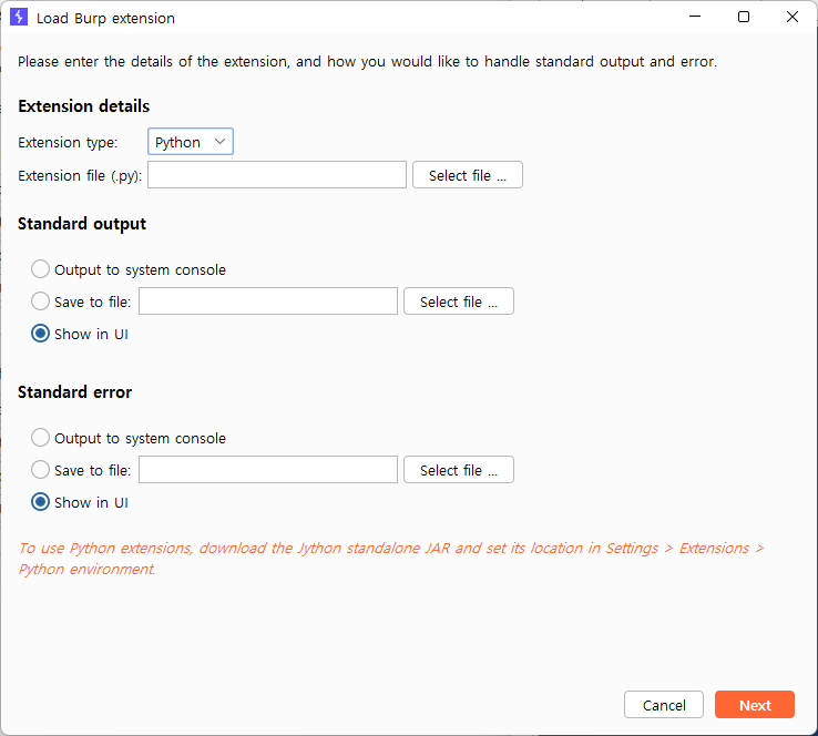 해당 기능을 위해선 Burpsuite 내 Jython 기능을 추가해야한다.