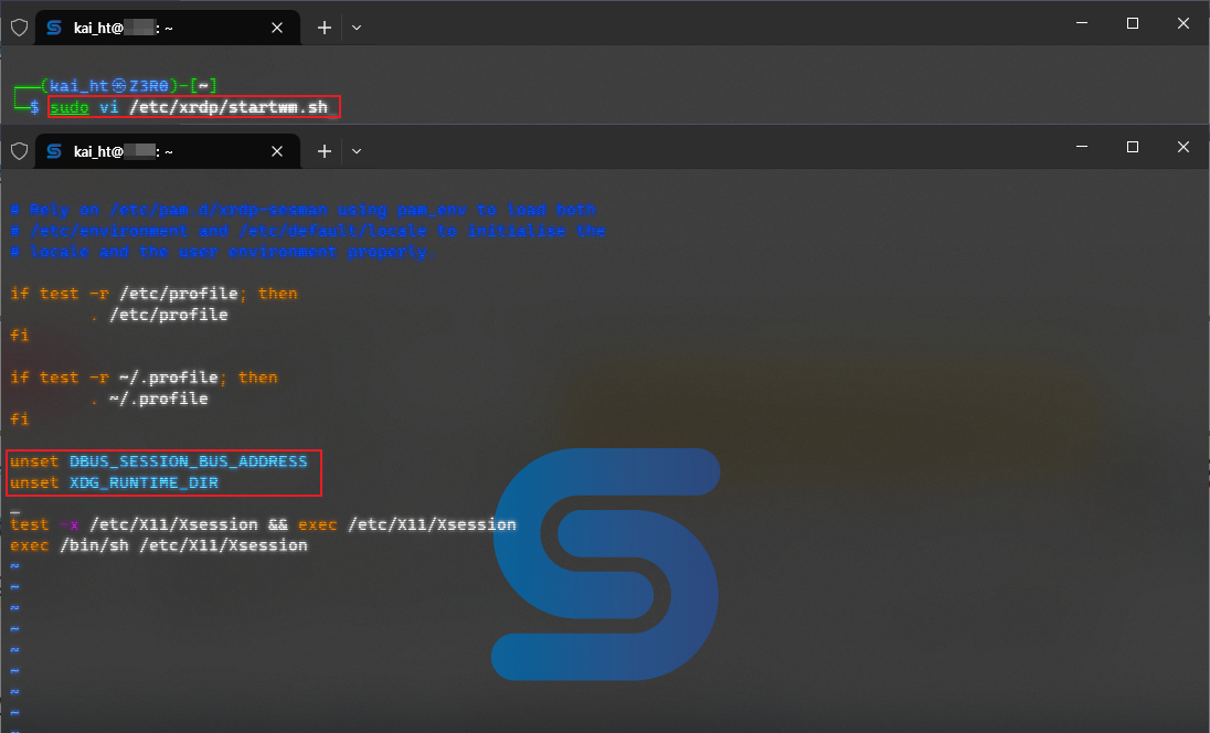 ┌──(kai_ht㉿kali)-[~] └─$ sudo vi /etc/xrdp/startwm.sh |
