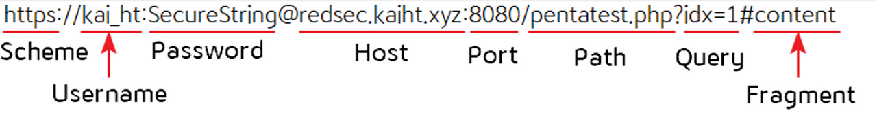 Scheme://Username:Password@Host:Port/Path?Query#Fragment